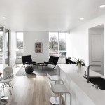 Designed by the Milwaukee-based Johnsen Schmaling Architects, Block 27 contains two each of one- and two-bedroom apartments; units range from 675 to 900 square feet. Given the lot’s tight constraints, the building stretches upward, resulting in a three story height that begins to bridge the gap between the low-lying residential area to the south and the increasingly tall commercial centers to the north. “What intrigued us about the site was that weird dichotomy between these two typologies,” says co-founding principal Sebastian Schmaling, AIA.