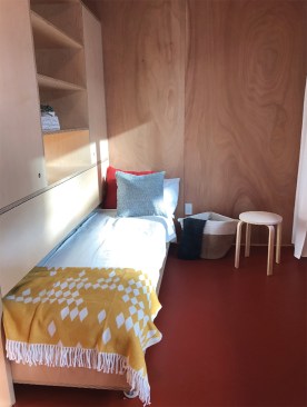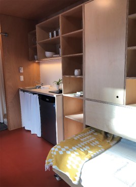 The new Block houses also value efficiency at a premium: Each residence contains 130 square feet of living space, a kitchenette, and a bathroom. “We’re trying to maximize the number of backyards we can put them in,” Troyer says. Plus, in a city where traditional affordable housing can cost approximately $330,000 and take years to develop, each redesigned Block House costs $75,000 and can be built in six months.