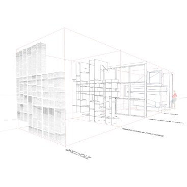 Its form derives from Castle Solitude, which appears to be a perfectly well-behaved piece of Baroque architecture, while hidden beneath an ordered facade, a sinister and degenerate architecture is concealed. These “fire-spaces” are mis-shapen spaces with windows through which the servant viewed the world of the aristocrats from behind the fire.