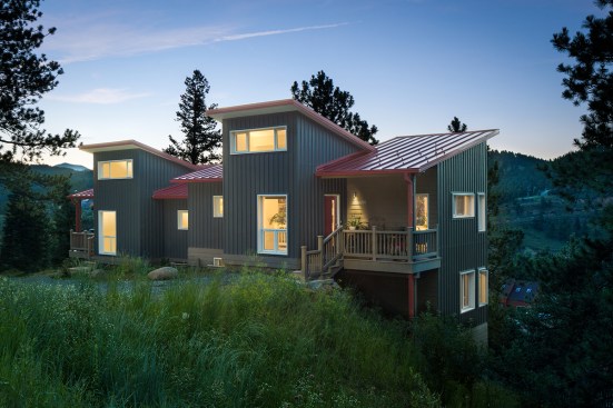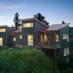 • Shed form, massing, and material selection work together to bring light and views into the home and are consistent with the Colorado mountain vernacular.