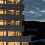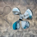 When Escher-Wyss is juxtaposed against the city center–which abuts Lake Zurich–industrial relics dominate; yet it is intertwined with the center, by the Hardbrücke railway station, in tandem with numerous trams. Stealthily slipping into this ‘rough’ yet regenerating urban context, Blumenhaus’ façade is finished with enormous matte-aluminum panels, nearly each of which is punctuated by the silhouettes of hibiscus flowers, and inversely, reliefs of the same patterning. These custom-designed, and ornament infused panels were crafted through an industrial process of ‘stamping’ the patterning through, or imprinting it onto, the aluminum, by sheet-forming and cutting; a process that involved metal-workers. The panels’ matte finish–and hibiscus flower silhouettes–lessens the lust of their shine, which allows their scale to recede when seen from afar, or at street-level. As the building ages, the oxidation process will add a weathered appearance to its exposed façades, allowing it to ‘age’ along with the area’s already ‘aging’ relics. Blumenhaus’ materiality, thus acknowledges its context’s storied industrial past, yet its incorporation of technology is readily apparent, only upon second-glance.
