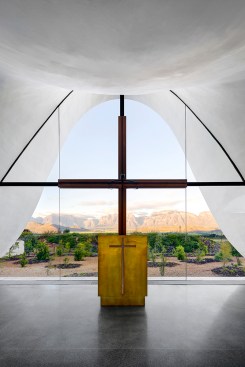 An open embrace which invites in, the chapel is also a space that extends outwards into the valley and mountains beyond, raising the awareness of God’s creation in the immediate environment.