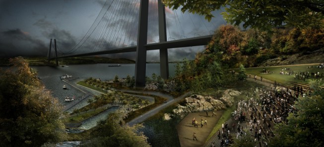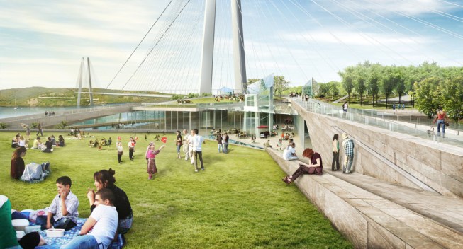 presents an extraordinary opportunity: a new public park anchoring the bridge on two