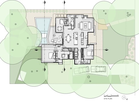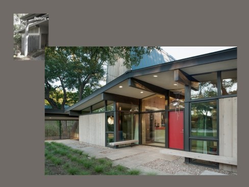 This remodel/addition was designed to complement a 1968 house originally designed by locally acclaimed mid-century modernist, AD Stenger. Recognizing the historicism of the original Japanese-inspired design and being familiar with the original architect’s prolific work, which included an A-frame five houses away, the new design marries opposing impulses by adding a vertical, reinterpreted A-frame to the horizontal, low-slung original house. Vertical wood and large timber details throughout enabled the design to reflect its original Japanese-inspired roots while also capturing the low-tech design style of the original house.