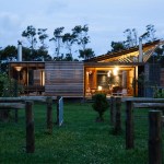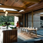 The primary negative space is the living room pavilion situated between the Lania and bedroom box. A floating roof caps the living room tipping up toward the south light and allowing a view of the tree top foliage. It is intended that the expansive roof gives the building a scale appropriate to the scale of the land.