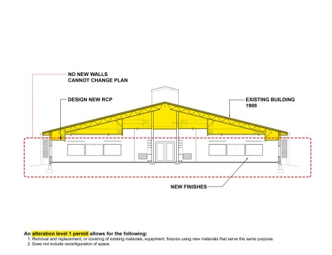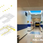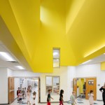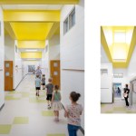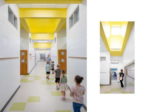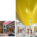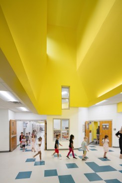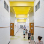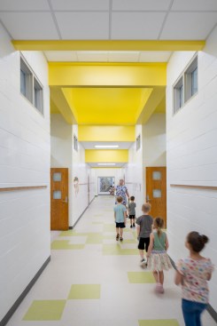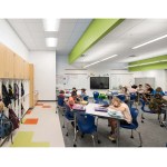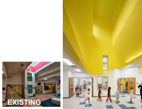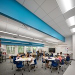 Unable to take much out or shift much around, the architects resolved to put a few things in—namely a series of eye-catching ceiling features expanding existing skylights into airy vertical shafts punctuated in vivid, pastel-toned colors. Relieving the former drear of the school’s long corridors, these elaborate apertures are complemented in the individual schoolrooms by new details in similar hues that give each space its own identity and sense of visual excitement. For all the difference in how the school looks, some of the most important changes can’t be seen at all, including a major overhaul of the ventilation system and the floor slabs that will ensure a safer, healthier learning experience for generations of Raleigh students.