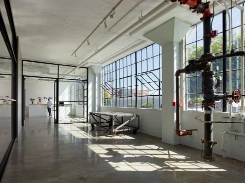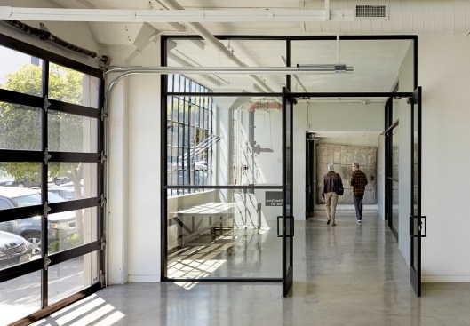 In late 2012 San Francisco art dealer Brian Gross decided to move from his Union Square location, where he had been well-established for more than twenty years, for a new home in the lower Portrero Hill district. In doing so he changed not only his neighborhood but also the style of the gallery space from office building to industrial chic. Upon agreeing to lease a former steel door manufacturer’s loft he contracted with KPa+d to design a new art-space at ground floor for two galleries with shared public space and back of house facilities.