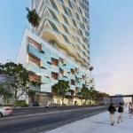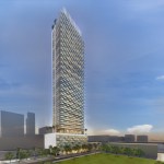 The 650,000 square foot residential tower includes 4,500 square feet of ground level retail space and will have 48 stories, 420 residential units, and 440 parking spaces.