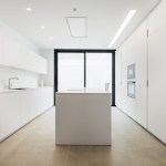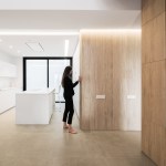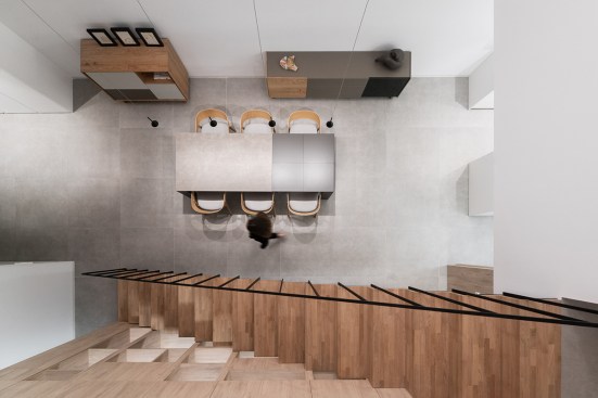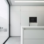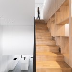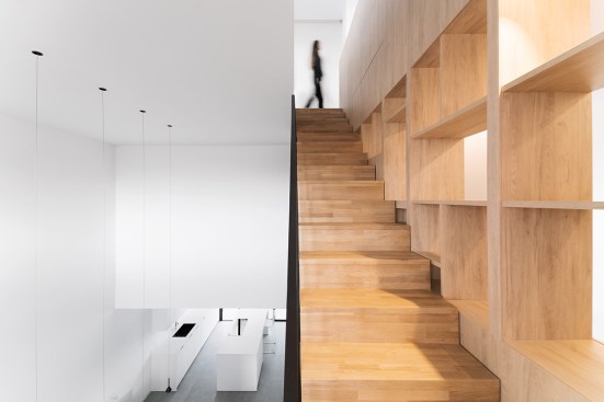 The purity of white geometry and natural light, are compensated in the human scale with natural oak, tangible in the staircase and central furniture.