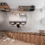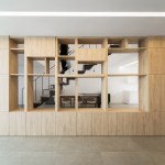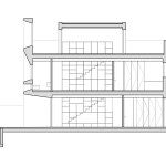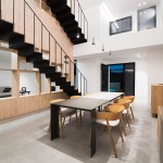 In the same way it happens in section, the dining area opens in double height to the space of circulation, bookstore and studio of first plant, and in triple height through the stairs to the polyvalent zone of second plant. This allows the entrance of natural light captured from the first floor to the core of the house.