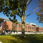 In 2016, Bristol Community College lead the way in achieving a Zero Net Energy (ZNE) academic laboratory building for the sciences with the completed construction of its John J. Sbrega Health and Science Building, designed by Sasaki. Achieving Zero Net Energy means the amount of energy required annually to operate the building is offset by an equal amount of energy generated onsite, a difficult feat for an energy-intensive building type in a cold climate like New England's. With ambitious goals in sight, Bristol and the Sasaki team, which includes Bard Rao + Athanas Consulting Engineers and Haley & Aldrich, aspired to make the new building not only elegant and inviting, but also a model of sustainability for academic science buildings. The 50,000 s/f building accommodates instructional labs and support space for field biology, biotech, microbiology, and chemistry, as well as nursing simulation labs, clinical laboratory science and medical assisting labs, and dental hygiene labs and teaching clinic, which has an important community outreach function—providing care to underserved populations. Many of these programs require traditionally energy-dense spaces with a large number of fume hoods, high plug loads, and specific ventilation and lighting requirements.