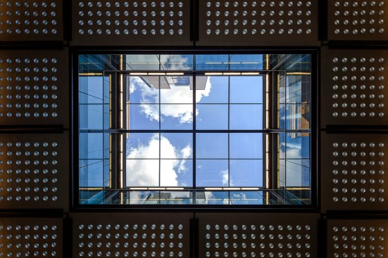 The design is sensitive to the Museum’s existing architecture and that of the surrounding Bloomsbury Conservation Area—the WCEC is bordered by seven listed buildings—whilst maintaining its own identity. The Portland stone and kiln-formed glass used on the pavilions are inspired by the materials of the existing buildings and the shaded façade subtly reveals the activities within. The mass and height of the pavilions are designed to create a subtle transition from the grand scale of the Museum to the more domestic proportions of the predominantly 18th century properties in the neighbouring streets.