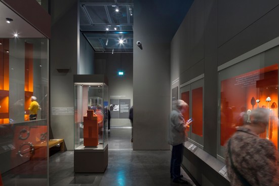 The Sainsbury Exhibitions Gallery, which connects at ground level to the Great Court for easy public access, replaces the Reading Room as the Museum’s largest temporary exhibition’s space, providing a total area of 1100m2 and 6-metre headroom for displays. It is capable of operating independently of the rest of the Museum with potential for 24/7 public access and has its own foyer and shop. It opened in March 2014 with the exhibition “Vikings: life and legend” that took full advantage of the spacious new gallery by installing a 37m-long, reconstructed Viking ship.
