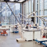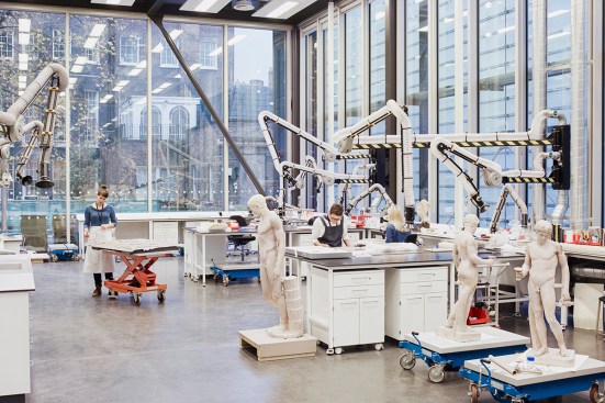 Whilst conservation studios and offices are housed at the top of pavilions in order to provide good quality daylight for detailed work, almost 70% of the building is underground, including the Collections Storage Facility where heavy floor loading capability and the building’s most stable environmental conditions are found. Over 5,000m2 of new storage space means the Museum can now house its entire, disparate collection at the Bloomsbury site and the addition of a 42-tonne truck lift (one of the biggest in Europe) allows large or incredibly fragile objects to be safely transported to and from the building under controlled conditions.