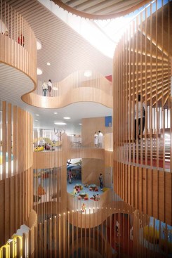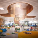 “Hands” are the metaphorical and organizational principle implemented in the entire building. Each “hand” is defined with a public “wrist”, providing a lounge area for the family during the stay at the hosptial. Each ‘finger’ offers patient bays and at the end of each finger winter gardens. The gardens stretch to the second floor, unfolding with different themes and experiences that accommodate the various patients’ needs. The organizational structure of the design ensures short distances between each area – including the gardens at a maximum range of 7 – 20 meters – similar to a standard house.