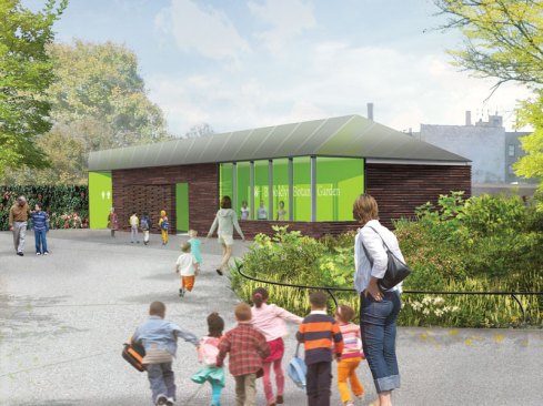 Other parts of the project will support an expanded existing program within the center of the Garden. A new dining kiosk will modernize a cafeteria plaza between existing greenhouses. The renovation of a former bookstore will create a new event space.