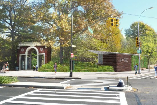 A McKim, Mead, and White-designed arch marks the former entrance at Flatbush Avenue and Empire Boulevard on the far south side of the Garden. To reactivate this entrance and support new gardens nearby, ARO has designed a gateway building with admissions and comfort station facilities. The building has a long parallelogram form that holds the street corner alongside the arch to promote the Garden’s presence. Its facade is made of handcrafted brick topped by a distinctive zinc roof.