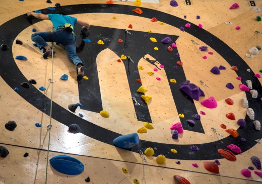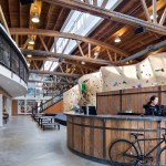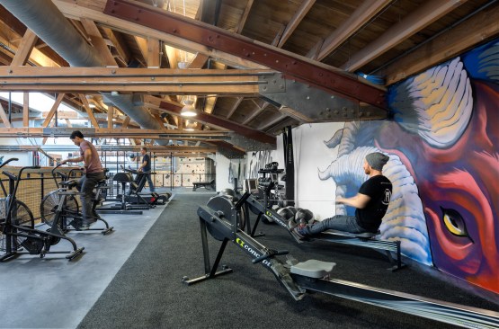 Arrowstreet has been working with Brooklyn Boulders (BKB) to expand their hybrid rock climbing facilities across the country, providing an unconventional fitness platform to bring together the art, music, culture, and entrepreneurial communities. The newest location is in Chicago’s West Loop; once a meatpacking district the area is now a haven for tech companies, restaurants, and art galleries. At 25,000 square feet, BKB Chicago is one of the largest indoor climbing facilities in the Midwest, with free-climb bouldering walls, 50-foot roped walls, fitness equipment, yoga, and the active collaborative workspace. Natural light enlivens the facility during the day.