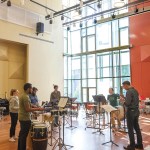 Similarly, the theater rehearsal room on the building’s lower level doubles as both a rehearsal space as and a small performance venue, maximizing the use of the room throughout the day and evening. Supporting this is a new, state-of-the art scene shop, affording students the opportunity to learn set making. The remainder of the Center provides a wide range of acoustically appropriate practice and rehearsal spaces for music.