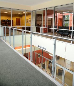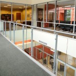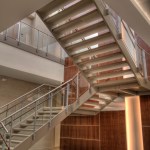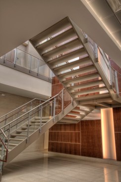 Baskervill’s design features an impressive two-story facade highlighted with large expanses of glass that lend flexibility to the floor plan and provide extensive views of the surrounding landscape. Among the interior of the building, there is a hospitality suite, which includes a bar that can seat up to 200 guests. This design-build project includes an atrium entrance, which is open to the second floor executive offices and board room, while the monumental stair is accented by a wood-paneled wall. The clerestory lighting at the second floor lobby and open work areas add a contemporary warmth to the design. The 117,380 square foot facility is a durable, pre-cast metal building that offers a high-end corporate finish suited to Villa Park, while gracefully complementing the surrounding area with architectural continuity.