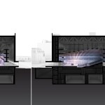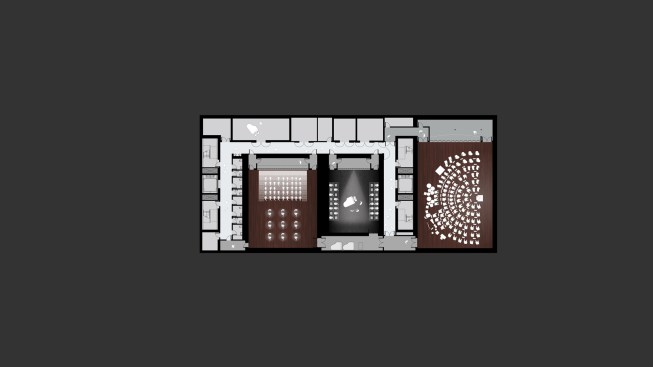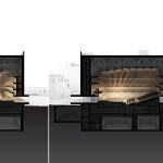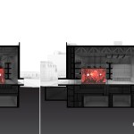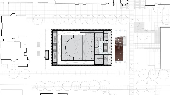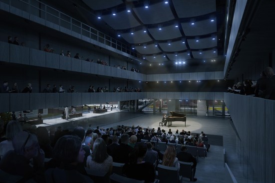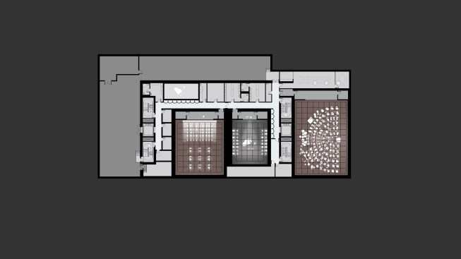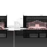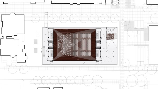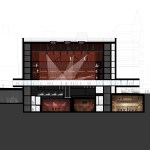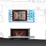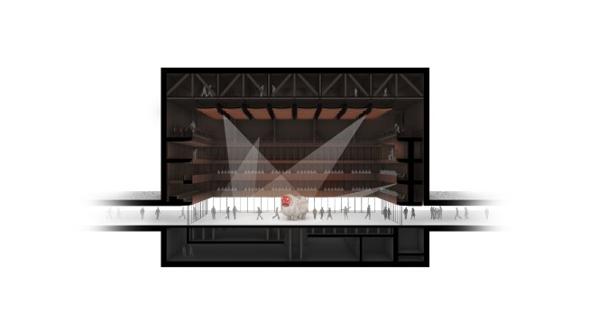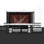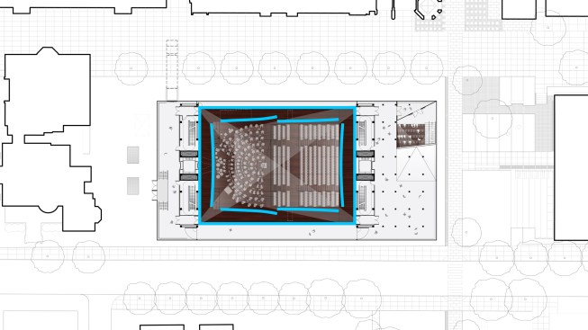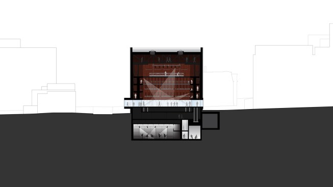 Embodying Brown’s commitment to infusing the arts into all intellectual pursuits, a ‘Clearstory’ slices through the entire building at stage level, allowing—when desired—performances, rehearsals, and research to spill out onto campus, and for the university at large to vicariously engage the constant creation of art. Light can be completely blocked by a perimeter drape. Additional scrims and blackouts can be installed inboard of the glass to negate interior reflections, or to create visually-controlled circulation within the acoustic volume for performers, stage-hands, and patrons.