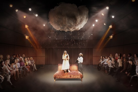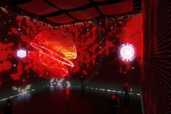 The Clearstory establishes the stage-level acoustic volume with a rectilinear glass enclosure of 50 mm (2 inch) laminated, frameless glazing, the mass of which provides a warm, full frequency reflection of musical sound. A second, inner line of similarly detailed glass arcs (suspended from, and moving with, the gantries) are shaped to distribute sound throughout the stage and audience areas. Openings between the arcs allow a portion of the sound to escape into the void beyond, helping to control loudness while sufficiently containing acoustic energy for an engaging, immersive experience.