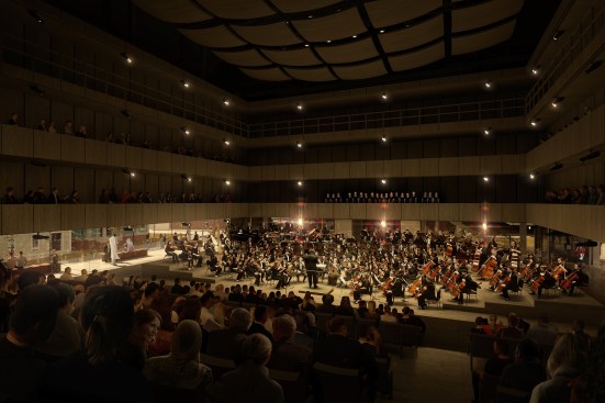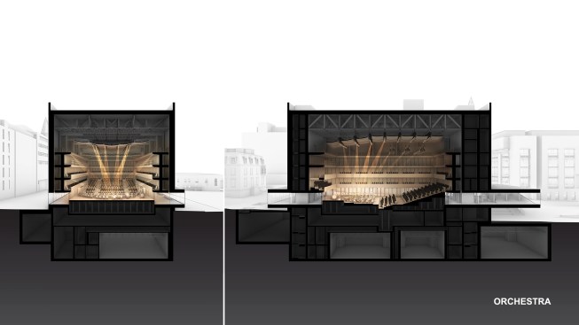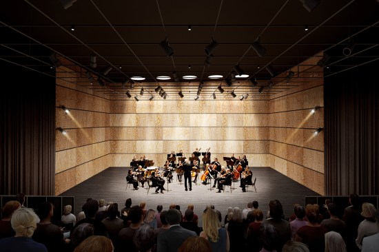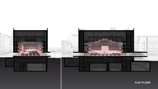 BAI’s manifold users require a space with radical spatial, acoustic, and technical flexibility—transforming amongst Experimental Media, Recital, End Stage, and Flat Floor configurations—while maintaining intimacy (typically 350 audience members or smaller). However, Brown also lacks a dedicated performance space suitable for many medium and large ensembles that already exist across academic programs and student organizations. Brown PAC must meet these needs as well, most notably an Orchestra configuration for joint performances by Brown’s renowned 100-piece symphony orchestra and 80-singer chorus, with audiences up to 625.