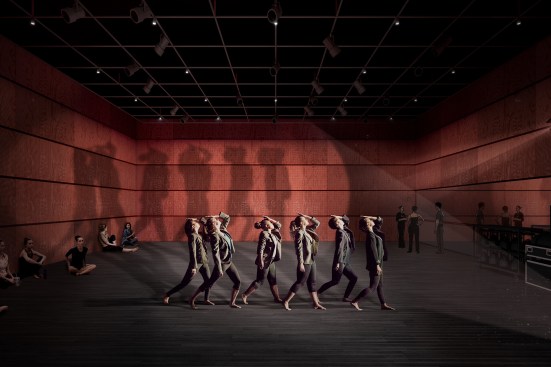 To house these five varied stage-audience configurations (and an array of potential secondary modes) within a single space, Brown PAC invents a new arts typology where all six surfaces of its shoebox-shaped main hall modulate physically and acoustically through automated and manually assisted performance equipment. These include: (walls) five seating gantries and a perimeter ring of retractable acoustic curtains; (ceiling) forty adjustable acoustic reflector panels, seven motorized utility battens, and three lighting bridges; and (floor) two stage lifts, three seating wagon lifts, and numerous stage risers and seating wagons. This equipment is augmented by professional touring grade amplification, multi-channel ‘ambisonic’ audio, immersive video and scenic projection, and a full complement of fixed lighting.