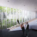 The design vision for the project ties the building to the landscape and to the unique geology of its New England context. Drawing inspiration from stone quarries found along the Connecticut coast, the design features a delicately striated façade of cast stone and glass that will be animated by the play of light across the building, changing appearance with the weather and time of day. The design orients the new entrance to face Bruce Park, connecting the project to the community while drawing the landscape in to create a light court in the center of the museum.
