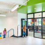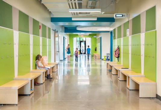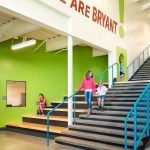 Bryant Elementary School is one of three new schools in Helena, Montana. Designed to replace its 80-year-old predecessor, which suffered from aging infrastructure and overcrowding, the new, two-story building is three times the size of the original and features an elevated sky bridge, connecting classrooms and administration areas to a community gym and music room. Each grade level (K-5) has classrooms and common areas, linked by paint accents in a single bright color. Adjustable lighting and plenty of natural light in the classrooms reinforce wellness.