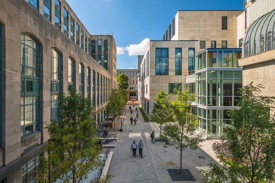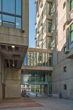 The firm’s 2008 master plan for the restoration, renovation, and expansion of the 50-year-old Josep Lluis Sert School of Law campus at the heart of Boston University unfolded in two phases. It began with the construction of the new five-story Sumner M. Redstone Building, followed by a comprehensive restoration and renovation of the 265-foot Law Tower and Pappas Library. The buildings are seamlessly attached at the base by a new two-story all-glass atrium that serves as a social hub for the complex. Together, the buildings provide state-of-the-art classrooms, practice court rooms, and conference rooms; a dining hall; multiple study and lounge areas; two libraries; and 164 offices for faculty and staff. The renovated tower restores the glory of Sert’s original design while updating the interiors to provide light-filled spaces and sweeping views, boost energy efficiency, and improve access to classrooms and training facilities.