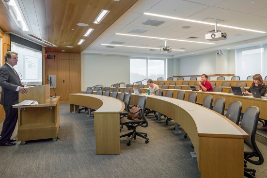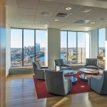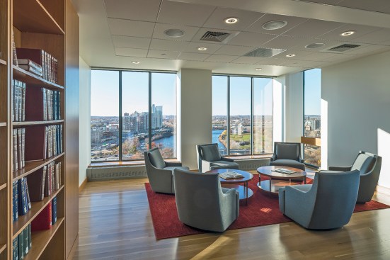 Constructing the new Redstone Building was part of the firm’s strategy to keep the law school on the existing site rather than build a new complex elsewhere. While the building absorbed much of a former outdoor plaza, the new space includes floor-to-ceiling windows in a café overlooking the Charles River and the expansive glass atrium entrance to bring the outside in. Students benefit from an expanded library, inviting study and lounge areas, and spacious classrooms and training rooms that are easily accessible.