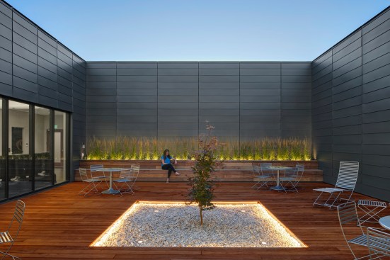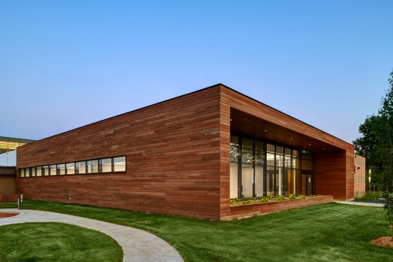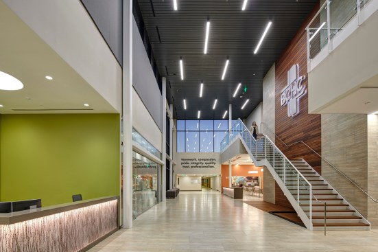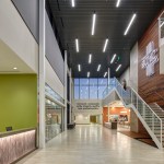 After completing a comprehensive master plan it was understood that the first step in its implementation was to design a new two-story outpatient clinic addition for this critical access hospital in Northeast Iowa. Our solution, encompassing over 60,000 square feet, offers a brilliant transformation of the existing one-story hospital. The design employs a formally simple diagram as a counterpoint to the 1960’s facility and looked to capitalize on the unique qualities of the campus by emphasizing wellness in every aspect of the design. The team developed planning that relies less on signage and more on architectural visual cues through use of Ipe cladding along both vertical and horizontal circulation paths for easy identification for patients, staff and guests. The new outpatient environments are oriented to capitalize on natural daylighting strategies and the known connection between healing and nature. One key precept of the design was to incorporate a new, easily identifiable entry to the hospital for the aging rural patient population. This new entry is framed by Ipe cladding and zinc metal panels, accented by glass that emanates light and serves as a beacon for the hospital and the community it serves. The entire second floor form was shifted forward, extending beyond the footprint of the main level creating an expansive covered drop-off cueing space for multiple vehicles. This simple move to avoid the need for a separate canopy concurrently created a void on the back side of the building providing a concealed space for a mechanical platform so that no components are stationed on the new roof. This concept supported the diagram but also, in turn, alleviated stress on the hospital’s facility director. The color palette was specifically selected to acknowledge the existing campus but provide a more current aesthetic. The design utilizes a more sophisticated rainscreen assembly, uses low-maintenance, extremely durable cladding materials and relates to the rural surrounding context. These natural materials were extrapolated into the interior through use of travertine tile and natural wood finishes creating a visually warm and welcoming addition resonating with the hospital’s aging, rural patient demographic. The design team took an integrated approach in dealing with the existing hospital and made clear, intuitive wayfinding a key element for the campus. A refreshed street presence of the facility has built up community confidence for local services and targets the organization as the best place to go for healthcare services in the region.