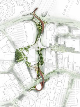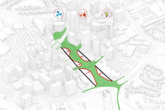 Slicing through the heart of the Buckhead neighborhood in Atlanta, a busy highway and a commuter rail line have physically fragmented the community for many years. Today, preliminary designs were revealed for a new park that spans the roadway and the railway and will make the area whole again, providing the public with safe, easy, and efficient access to the many amenities in the district. Buckhead Park Over GA400 will raise the profile of Atlanta as a visionary 21st-century city, becoming a signature element of the city and contributing to both the local economy and quality of life much like the famed linear parks of Paris and New York. New York City-based ROGERS PARTNERS Architects+Urban Designers (Rogers Partners) is partnering with Nelson Byrd Woltz Landscape Architects (NBW) on the design.