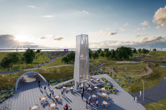 The Buffalo Outer Harbor Access and Activation plan is part of a large city-wide initiative to bring the surrounding neighborhoods, Buffalo community, and tourists to the Outer Harbor. Recreational amenities and iconic architectural spaces highlight seasonal programs and events to improve access and interest in this compelling waterfront setting. Extensive pedestrian and bicycle networks, an event lawn, strategic architecture, way-finding, and art are used to activate the harbor. A ticket booth kiosk is designed to serve its function, and also be a landmark beacon orienting bikers along the outer harbor and referencing the historic grain silos that once prevailed over the entire site during Buffalo's industrial boom.