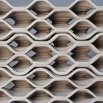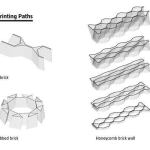 On his conventional fused deposition modeling (FDM) printer, Peters replaced its plastic extrusion system, or print head, with an air-pressure nozzle that delivers a homemade liquid clay mixture stored in reusable plastic cartridges. Layer by layer, a brick emerges from a linear bead. Each brick takes about 15 to 20 minutes to print, a day to air dry, and then 12 hours to fire in a kiln at roughly 2,000 F. To date, Peters has designed and printed four types of bricks: honeycomb, interlocking, ribbed, and x-bricks. Like all craftsmen, he continues to finesse his work to account for the performance of the material in reality.
