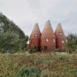 The traditional oast house form has been reimagined by ACME to create a new home within the rolling landscape and apple orchards of Kent. Bumpers Oast represents a 21st century riff on a local vernacular derived from the houses used to dry hops as part of the beer-brewing process. Four shingle-clad towers rise up from the natural surroundings, creating an extremely low-energy home with a bold contemporary aesthetic.