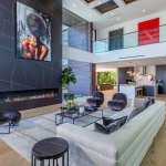 The Bundy Drive house is a celebration of the sporting and entertainment lifestyle of Los Angeles. Multiple indoor and outdoor fire features by Ecosmart, indoor and outdoor bars, areas for people with different interests to gather, all make this property a destination for entertainment, fun, and gorgeous views of LA. It is also a livable home where the inhabitants can stay visually connected, experience the outdoors from inside, and also easily retreat to quiet spaces for solitude and rejuvenation.