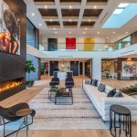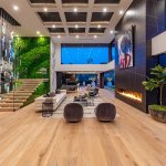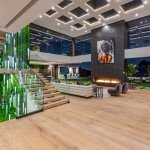 The fresh air of this remarkably open space is enhanced by the three-story green wall in the stairway volume. This living tapestry brings a burst of color and nature indoors, while cleaning the air and elevating mood.