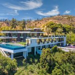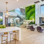 The design is on three levels and includes four bedrooms with en suite baths, a primary bedroom wing with a large black and white marble bath, and two separate closet/dressing rooms. In this room glass walls open to views and a private patio. One view in particular is of one of the greatest repositories of art in the world–the Getty Museum, and brings inspiration and appreciation of human artistic vision.