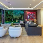 Our three-acre Bundy Drive project, completed in collaboration with Ramtin Ray Nosrati at Huntington Estates Properties, is certainly brimming with entertainment and the desirable amenities that bring resort living home. All this requires a large house, so our design goal, once again, is to maintain a human connection despite a broad canvas. We create visual connections between multiple levels, and even across large volumes, so people won’t find themselves cut off in a dark hallway. By creating view corridors, we assure that when you come around a corner there is something to draw you in, always a window with a view, a piece of art or sculpture, another room, or an expansive view of the entire living space. Axes framed by axes bring balance and symmetry, and draw the eye to points of interest. And so, a large resort style home begins to “live small”; a Marc Whipple signature design element.