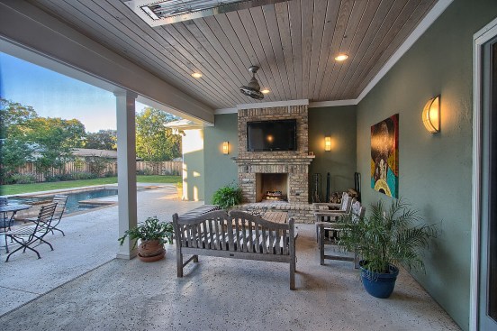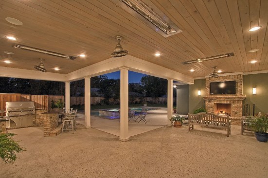 5. Exterior heaters and fans are included in the outdoor living area to provide a comfortable environment during all seasons of the year.