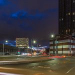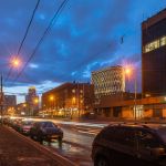 Thus, in the evening the whole building looks like a single ensemble from the basement to the highest point, emphasized by lighting. The effect of light pollution is minimized because the luminous flux of the luminaires is aimed directly at the construction’s frame (along it) and there was used extremely narrow light beam. Light does not interfere with the pedestrians and people inside the building.