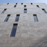 Tchoban plans to cover the both long sides with a glas covered perforated façade, the short sides will contain the partially opened natural stone facades.