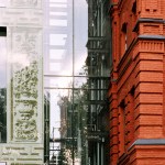 The “reflecting” element in the façades of the building finds an expression in the print design of the glas facades with ornaments and reliefs of the Wilhelminian style.