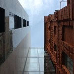 Between the south-west-façade and bordering Wilhelminian style-building a chrystal vitreous connecting building is being developed, whose filigree bridges functionally connect both neighbour buildings, and in which four panorama elevators assure the vertical development.