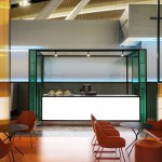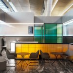 The hall PRIORITY PASS has an unusual structure: it is an elongated closed room without windows and its own ceiling. Natural light come through the complex rooflights of the terminal. Several light scenarios were developed for the design of this space: the interaction of natural light with artificial light during daytime and a comfortable level of lighting in the evening time, when the illumination of the main space of the airport dominates in the hall due to the lack of natural light.