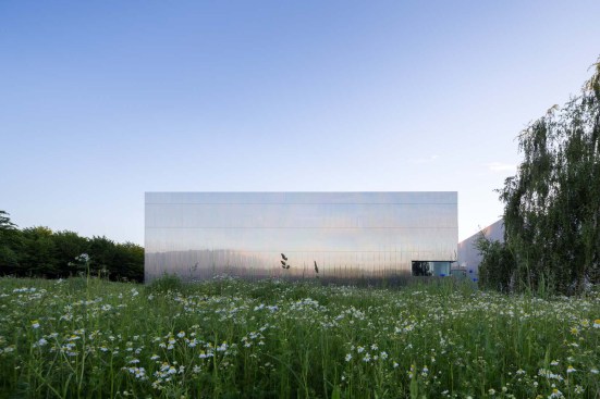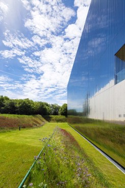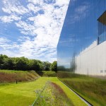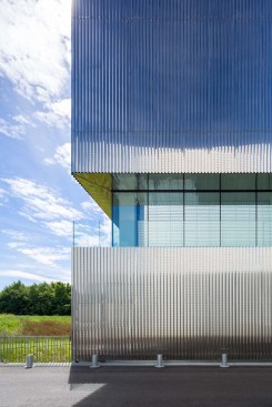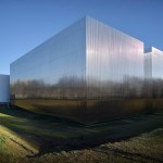 From the point of view of both implementation and architectural expression, the extension works in continuity with Perrault’s building. Again taking metal as the sole material, the extension is covered in veined stainless steel; its brightness contrasts with the dullness of the original aluminum.