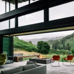 Taking the client’s vision of butterflies visiting the site as inspiration, the architects divided the house into three smaller pavilions, which land lightly on the site and are capped by expressive roofs.