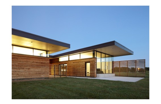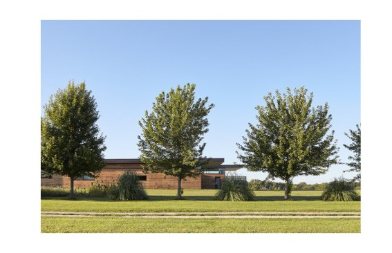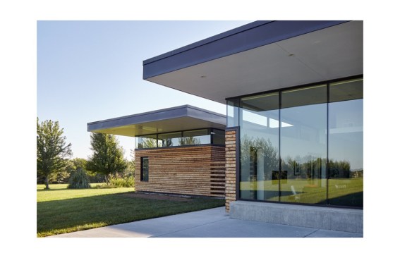 The Byers family of five had a clear vision for their new home on a stretch of Midwestern Prairie. They desired an interior layout that brought their family together comfortably within an abundance of natural light, and ever-present views of the expansive Midwestern landscape, evening thunderstorms and dramatic sunsets. The public wing of the house opens to the western horizon while a linear clerestory window system brings light into public and private interior rooms. A simple composition of exterior materials is organized by a gently sloped cantilevered roof line, rendering the structure low and lean in the surrounding landscape. The Byers Residence is the ranch house re-invented—a site-specific structure finely tuned to the subtly and drama of the earth and sky around it.